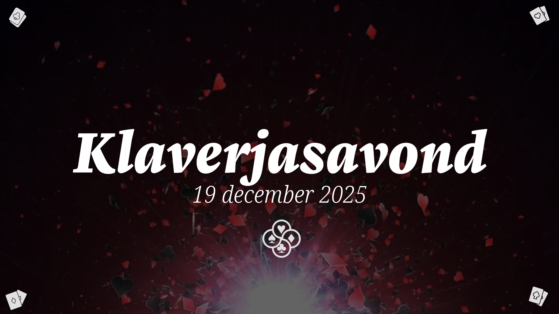 Op 19 december om 19:30 uur organiseren we weer een gezellige klaverjasavond voor alle liefhebbers van een leuk kaartpotje.